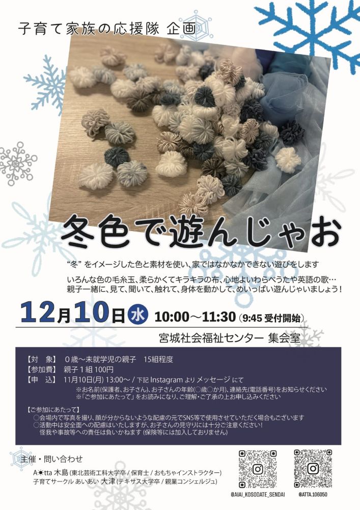 【イベント案内】「冬色で遊んじゃお」(主催:A☀tta、子育てサークルあいあい)