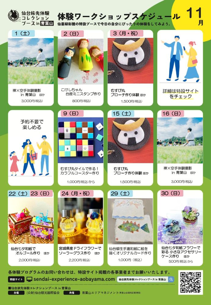 【イベント案内】仙台旅先体験コレクションブース in 青葉山 11月スケジュール(主催:公益財団法人 仙台観光国際協会)
