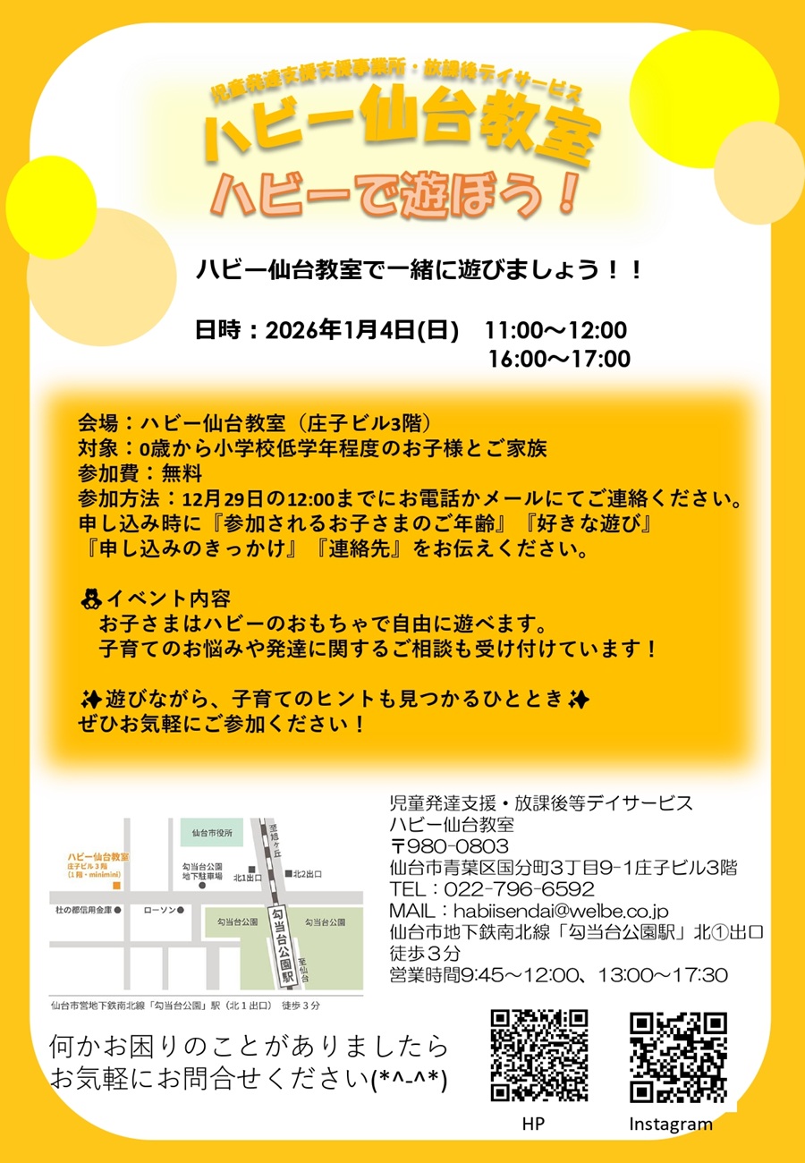 ハビーであそぼう(主催:児童発達支援・放課後等デイサービスハビー仙台教室)