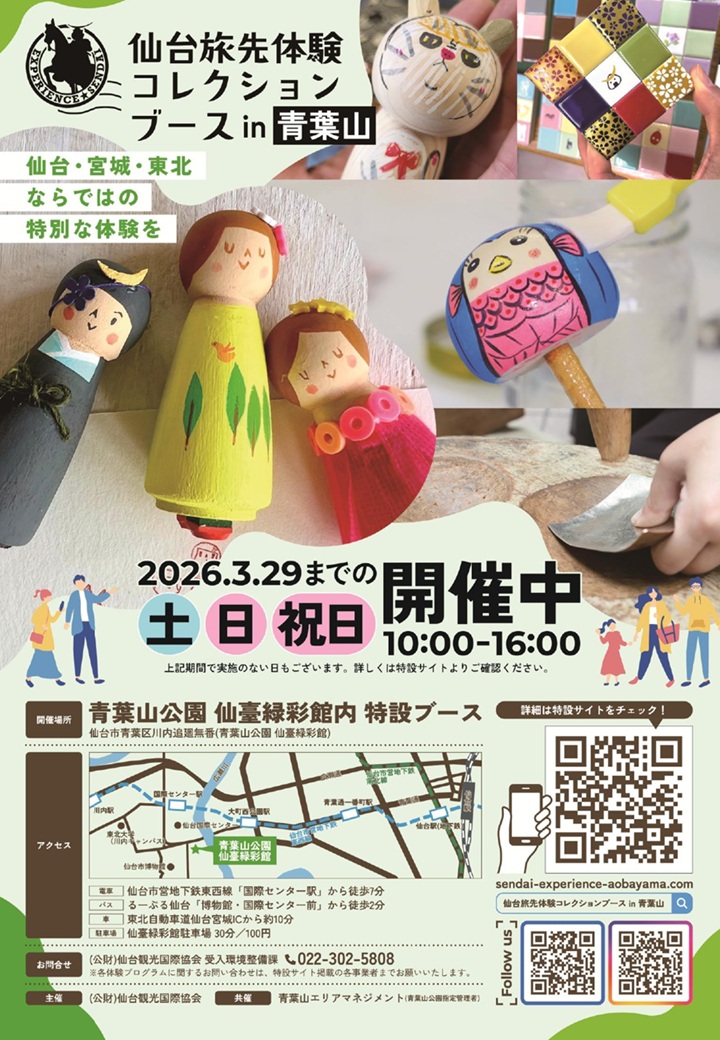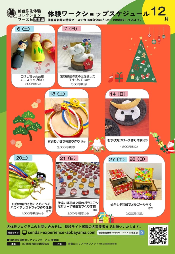 【イベント案内】仙台旅先体験コレクションブース in 青葉山 12月スケジュール(主催:公益財団法人 仙台観光国際協会)