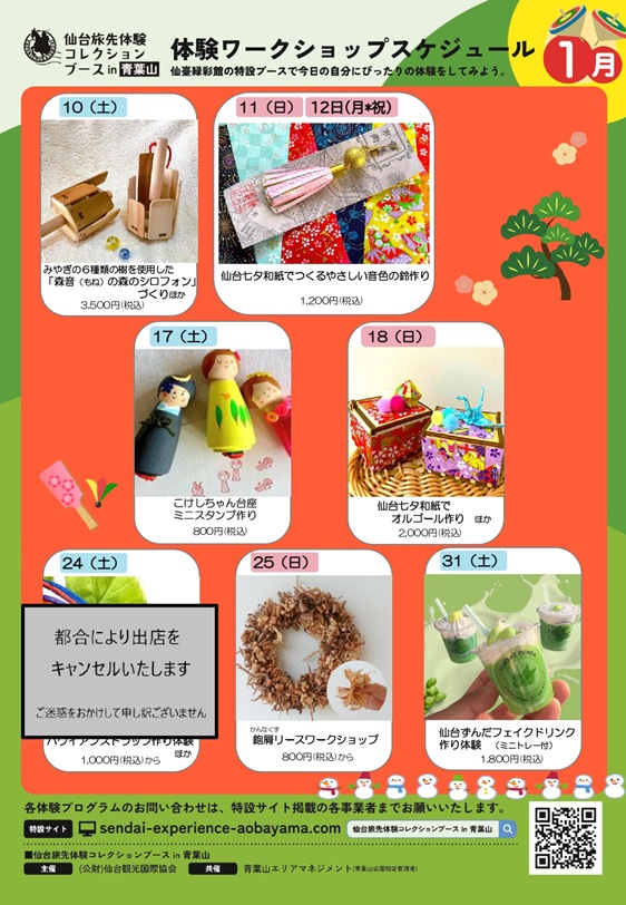 【終了しました】仙台旅先体験コレクションブース in 青葉山 1月スケジュール(主催:公益財団法人 仙台観光国際協会)