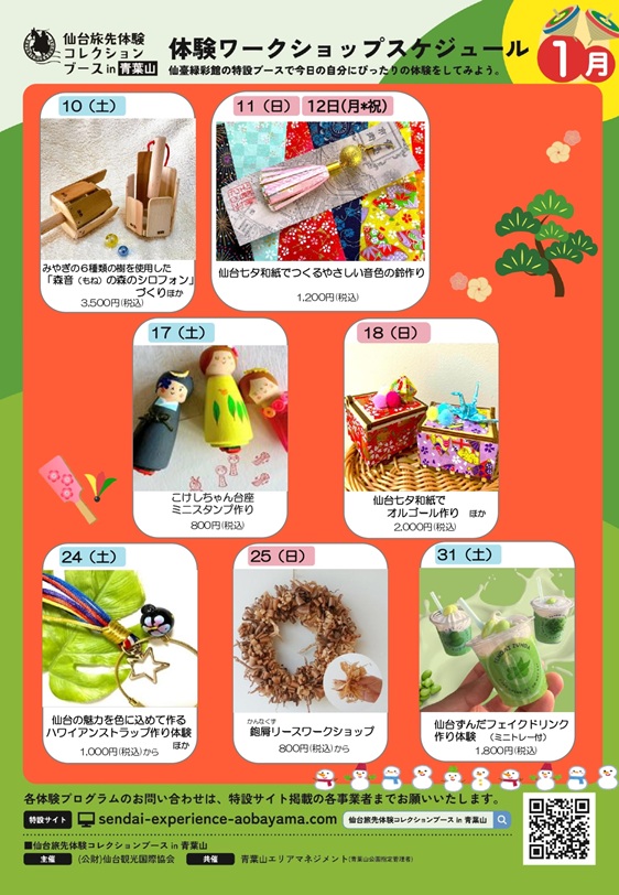 【イベント案内】仙台旅先体験コレクションブース in 青葉山 1月スケジュール(主催:公益財団法人 仙台観光国際協会)