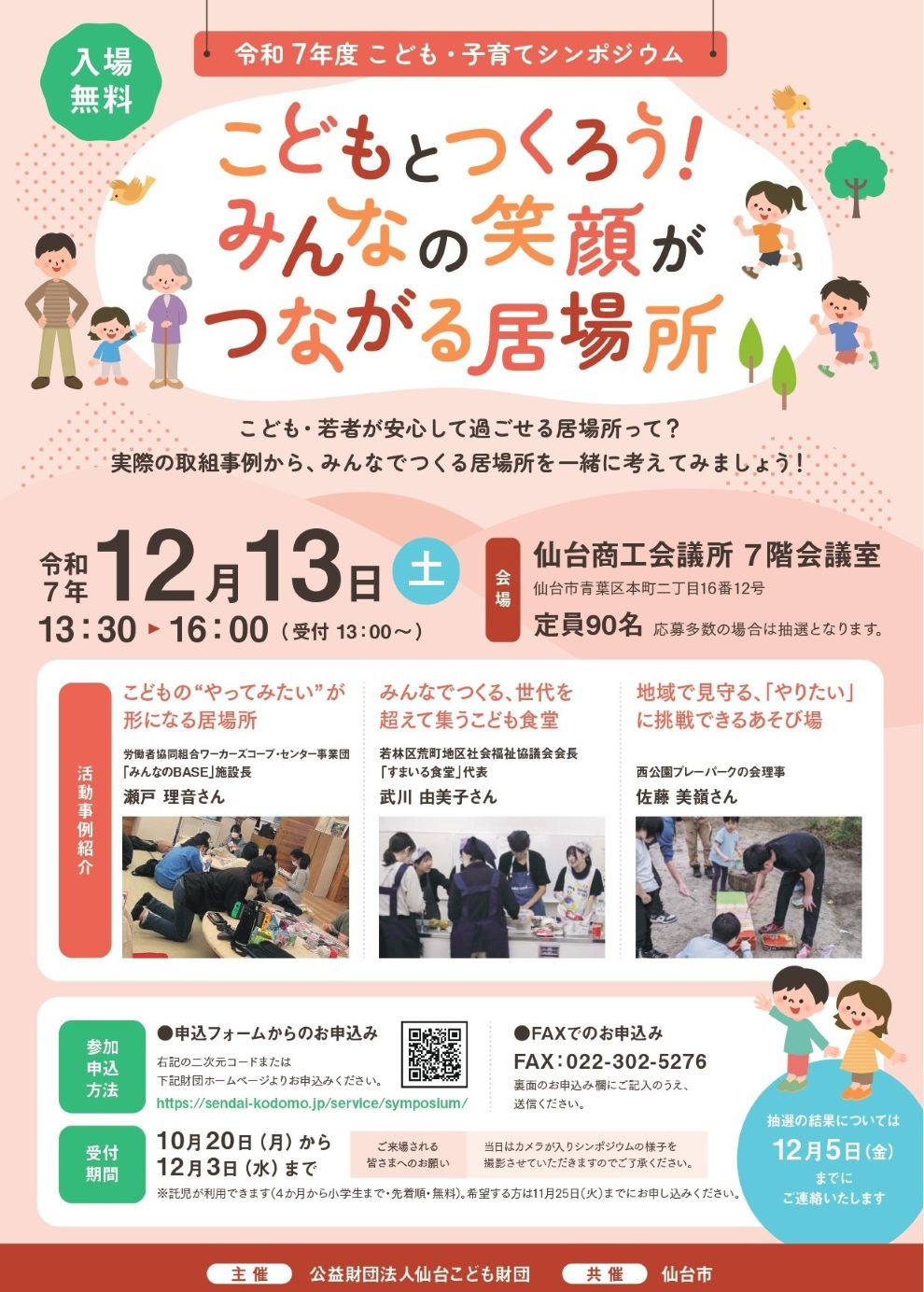 【シンポジウム】12/13(土)開催します!令和7年度こども・子育てシンポジウム「こどもとつくろう!みんなの笑顔がつながる居場所」