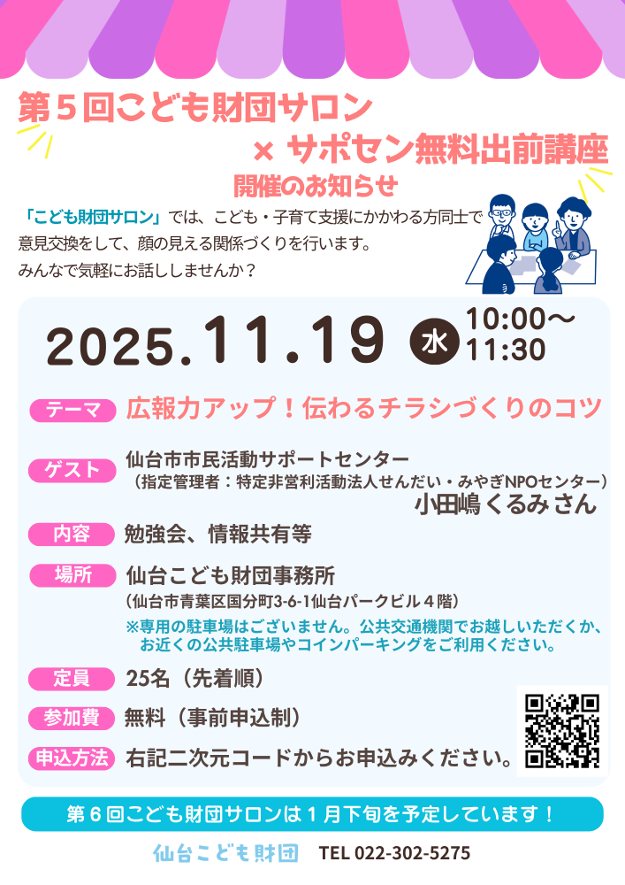 【こども財団サロン】第5回を11/19(水)に開催します!(申込受付中)