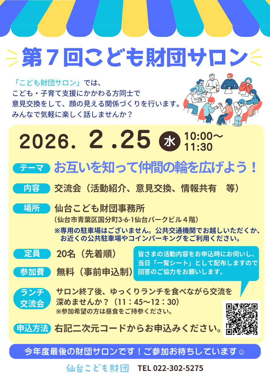 【こども財団サロン】第7回を2/25(水)に開催します!