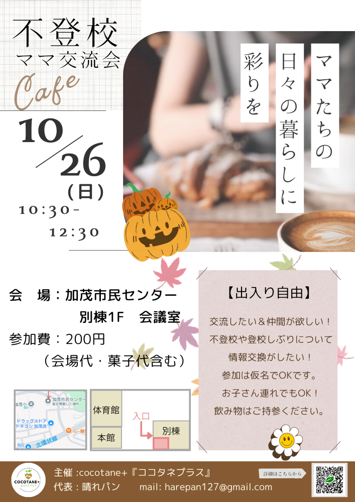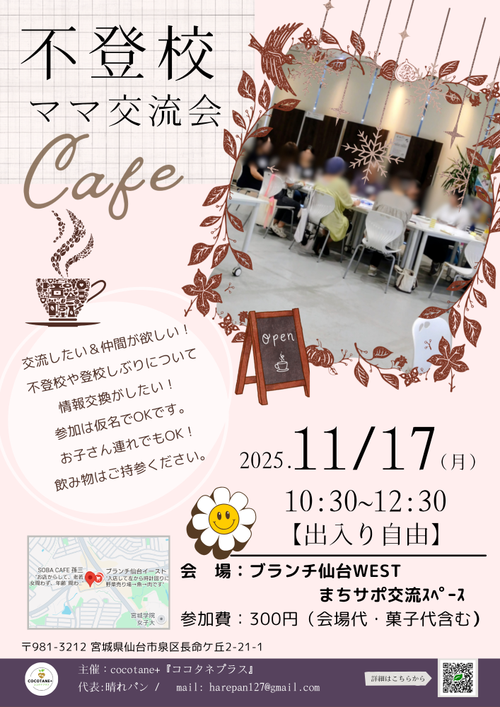 「不登校ママ交流会cafe」(主催:cocotane+『ココタネプラス』)