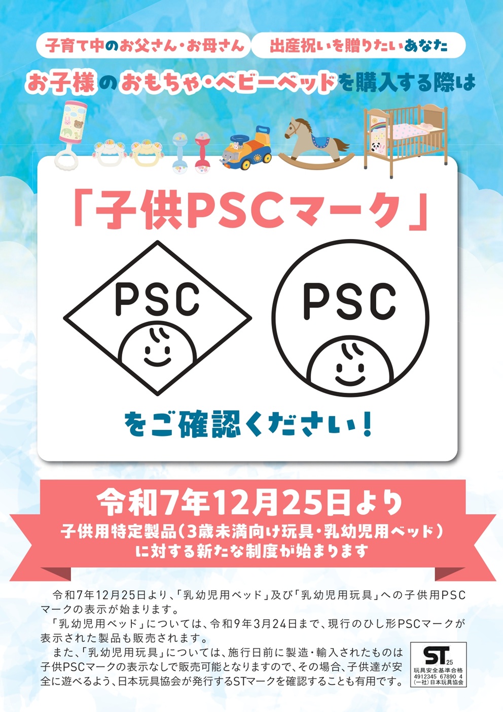 お子様のおもちゃ・ベビーベットを購入する際は「子供PSCマーク」をご確認ください!(経済産業省からのお知らせ)
