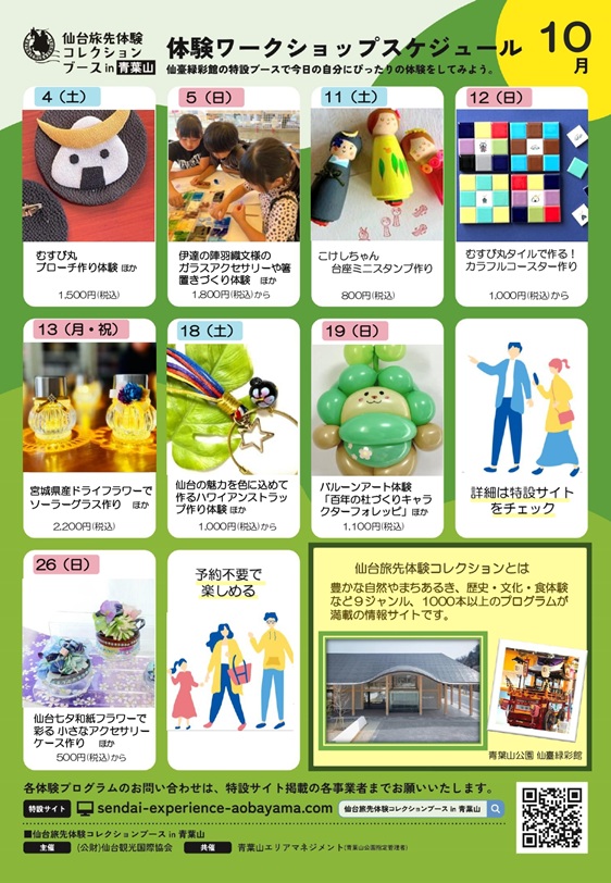 【イベント案内】仙台旅先体験コレクションブース in 青葉山 10月スケジュール(主催:公益財団法人 仙台観光国際協会)