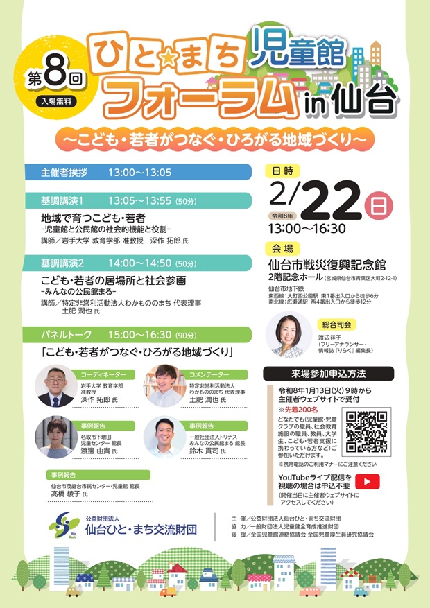 【イベント案内】第8回ひと☆まち児童館フォーラムin仙台(主催:仙台ひと・まち交流財団)