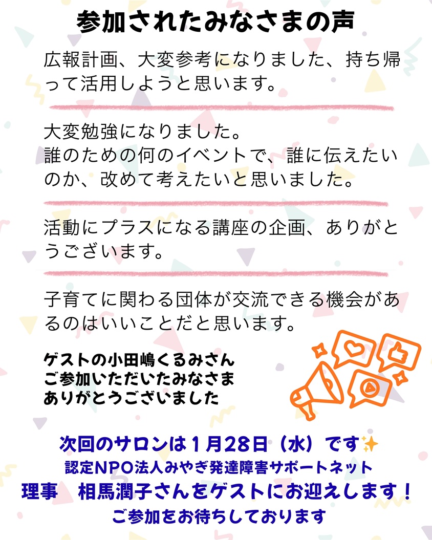 認定NPO法人みやぎ発達障害サポートネット 理事 相馬潤子さんをゲストにお迎えします!