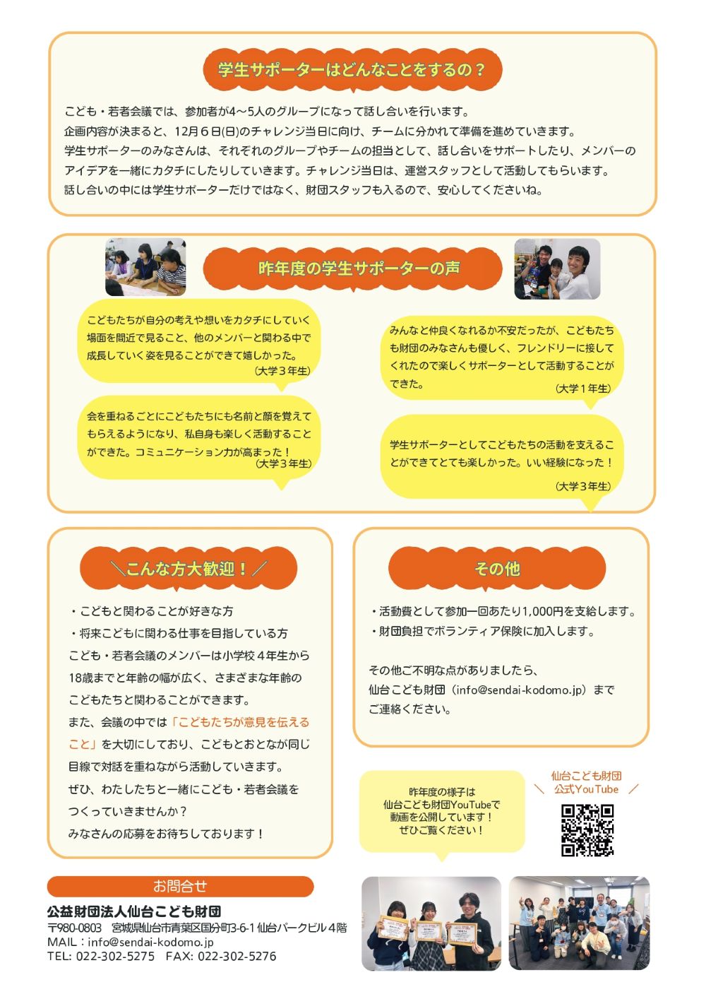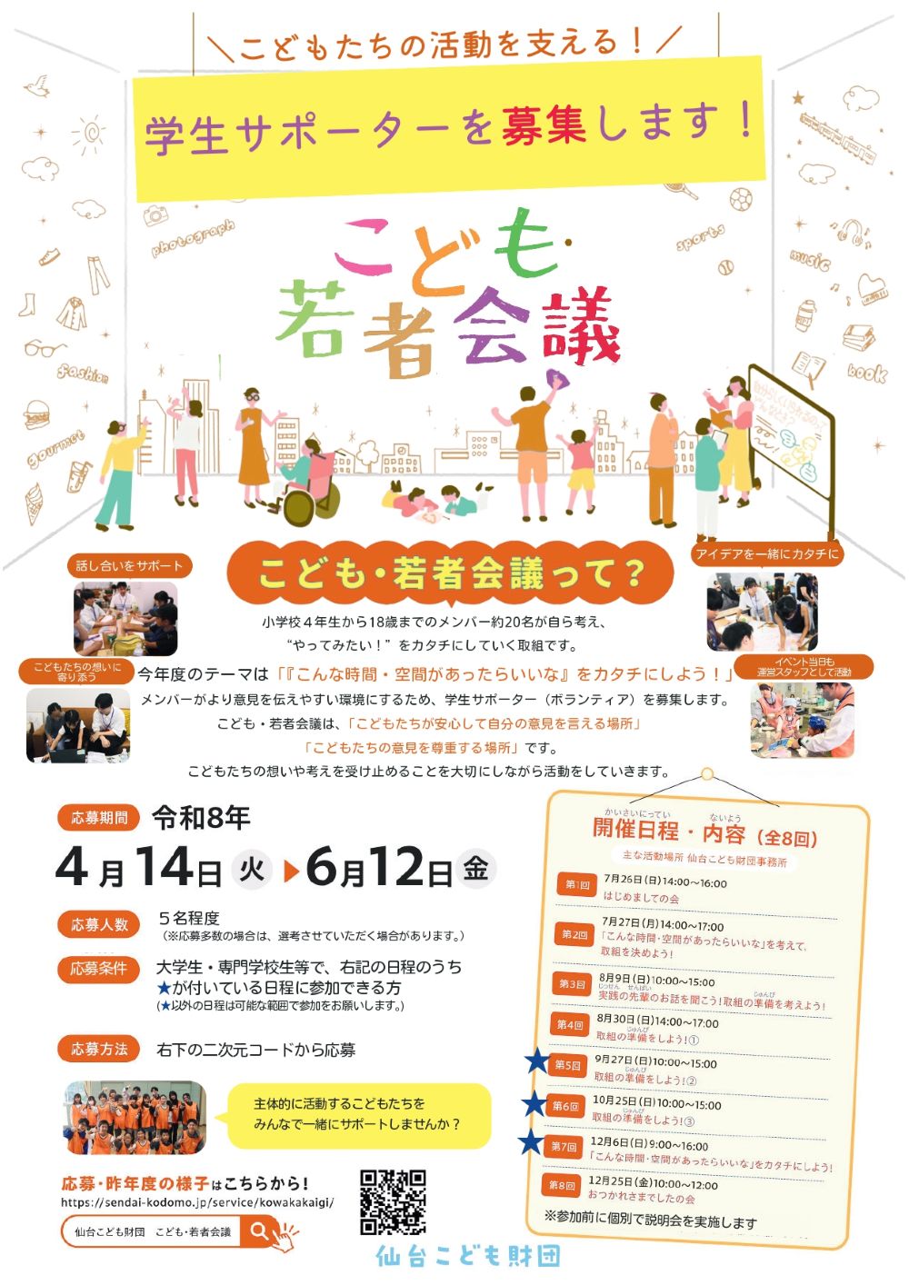 今年度は、参加者がより意見を伝えやすい環境にするため、学生サポーター(ボランティア)を募集します。
